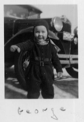 My sister, Kathryn, was George Jr's mother. I was thirteen when Kathryn and George Sr. told us they were expecting a child. This child, George Jr. would be my parents (Phoebe and Henry Kettwich) first grandchild. Kathryn and George Sr. lived in Chenoa, IL, a distance of approximately 30 miles from my parents farm in rural Minonk, IL. Most Sunday's Kathryn and George Sr. came to my parent's home so my mother and Kathryn spent the afternoons making baby quilts and clothing.